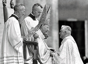 Johannes Paul I. empfängt bei seiner Amtseinführung Joseph Kardinal Ratzinger, den späteren Papst Benedikt XVI.
